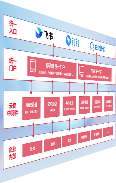 对协作平台提供支持服务,,,支持企业应用与协作平台对接,,,包含组织同步、、、、消息集成、、、、待办集成等。。。。支持目前主流的协作平台:钉钉、、、、企微和飞书。。。